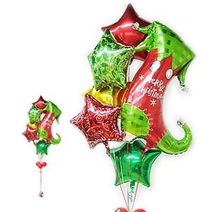 キラキラ&ピカピカなのに落ち着いた大人の雰囲気ボリューム満点♪迫力満点♪のクリスマスバルーンセット★ ウキウキもい〜っぱい♪ボンボリの付いたはき口やくるっとなったつま先。はじけてる感じは、バッチリ☆まるでブーツがダンスをしているみたい♪グリーンのチェック柄もとっても かわいいです♪クリスマスプレゼントにもぴったり!メッセージカード代は無料!!さらにヘリウムガス補充缶1本のおまけ付き!!高さ:約230cm内容:ビックシェイプバルーン1個 プリント星型バルーン2個 無地星型バルーン3個◎膨らませた(ヘリウムガス入り)でお届けします。◎浮遊期間は、丸やハートで約7日〜2週間です。 (2〜3日目から抜けてきた?と分かる感じで少しづつ抜けていきます)"} このバルーンギフトセットで使用しているバルーンたち☆.。・:*・゜☆.。.:*・゜☆