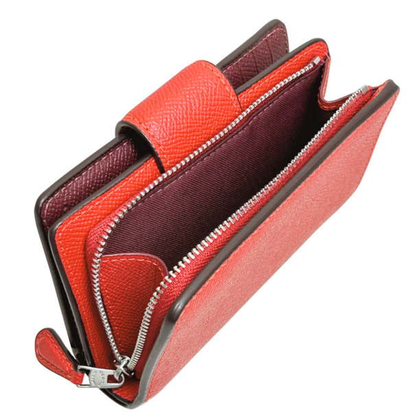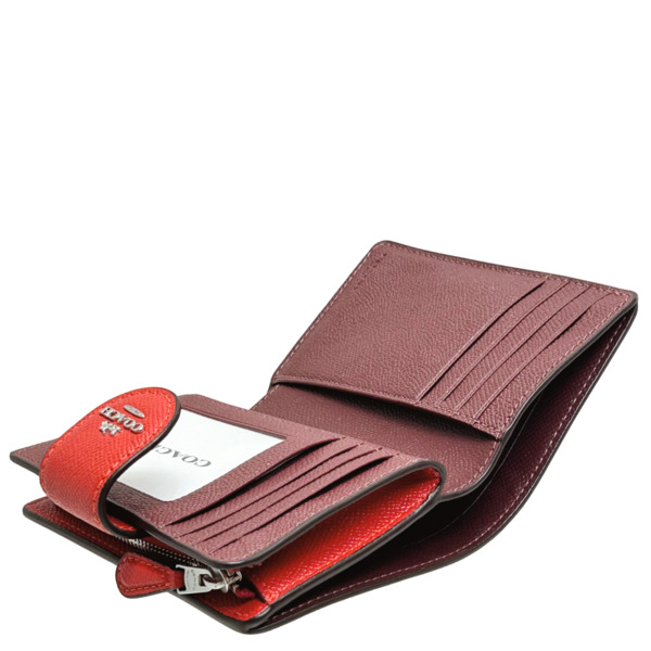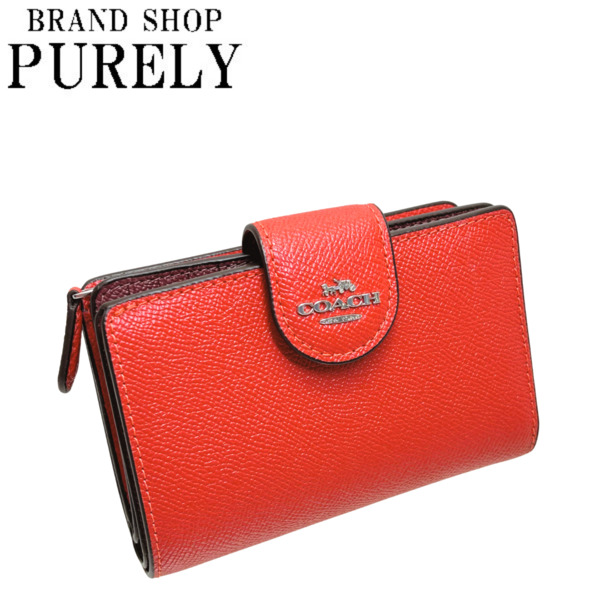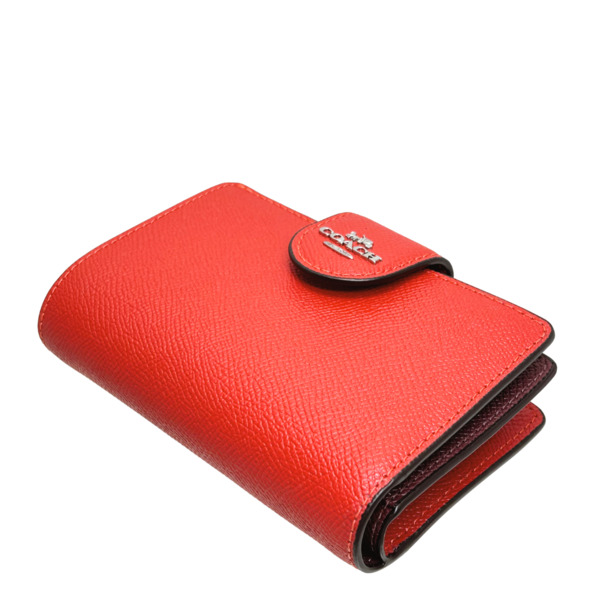 コーチ 財布 レディース COACH 折り財布 クロスグレイン レザー ミディアム コーナー ジップ ウォレット 6390 SVRCK ブライトポピー