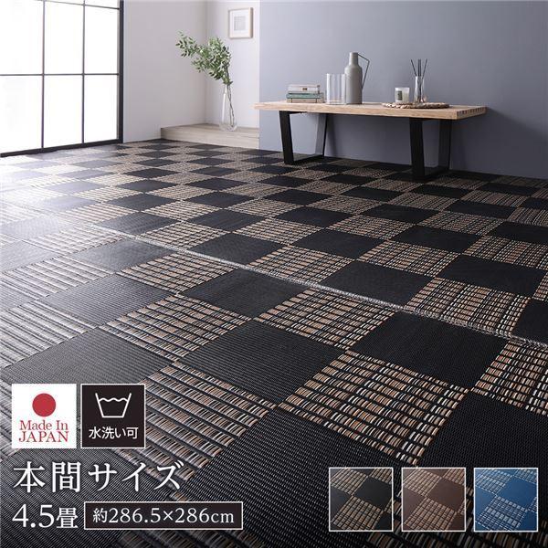 ラグ マット い草 調 本間4.5畳 約286.5×286cm ブラック 洗える 日本製 軽量 除菌スプレー対応 市松模様 ポリプロピレン 敷物〔〕