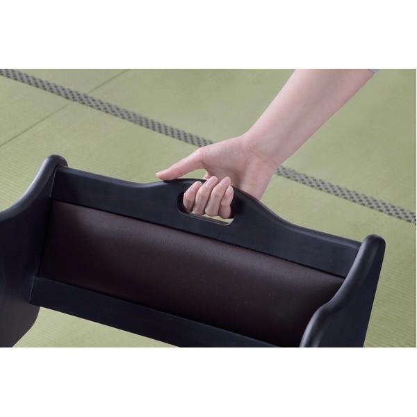 低い座面で年配の方も座りやすい設計です。また、大きな取手は握りやすく、折りたたみや移動に便利です。畳にキズがつきにくい太い脚で、和室の使用にピッタリです。