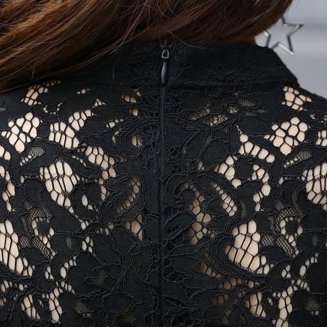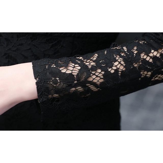パーティードレス マーメイドドレス 結婚式 お呼ばれドレス 二次会 黒 韓国 フォーマル ワンピース 長袖 膝丈 大きいサイズ 3L 総レース シースルー