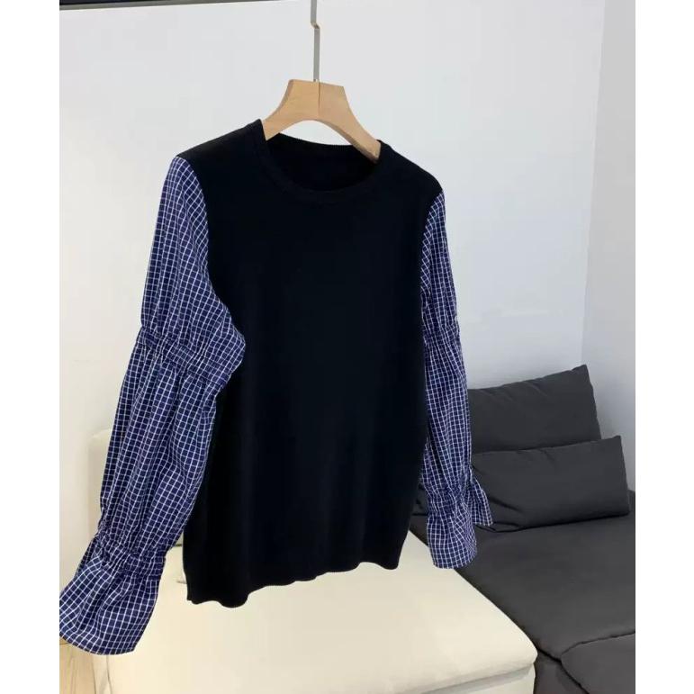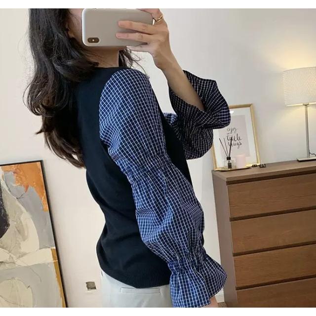 ドッキングシャツ レイヤード風トップス 重ね着風 シャツ レディース 長袖 トップス 春 秋 チェックシャツ チェック柄 ボリューム袖 大きいサイズ 大人可愛い