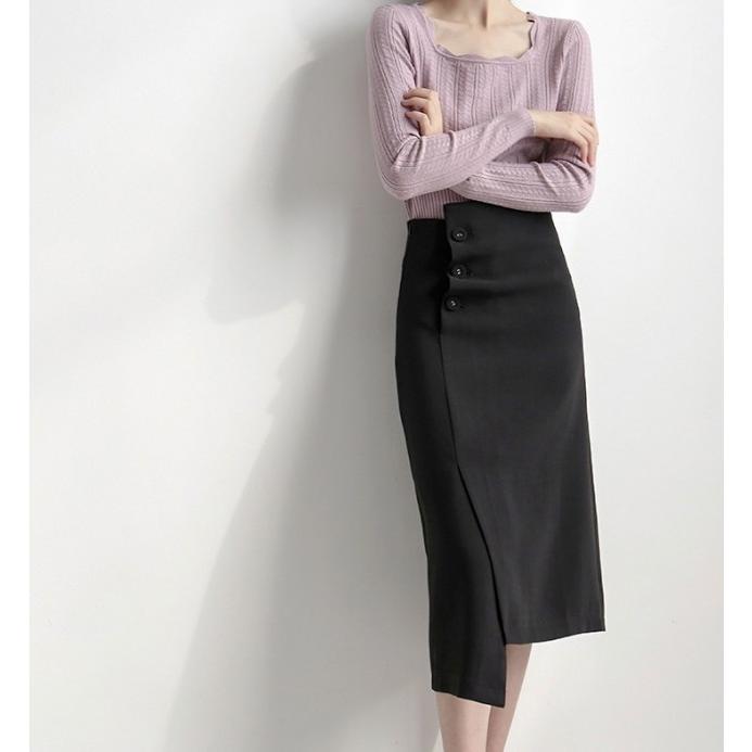 タイトスカート ミモレ丈 ハイウエスト スカート タイト 膝下 レディース ボトムス 黒 オフィス アシンメトリースカート 大きいサイズ 春 秋 冬 シンプル