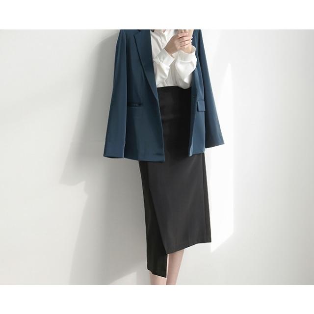 裾とウエスト部分をアシンメトリーデザインに仕立てた、