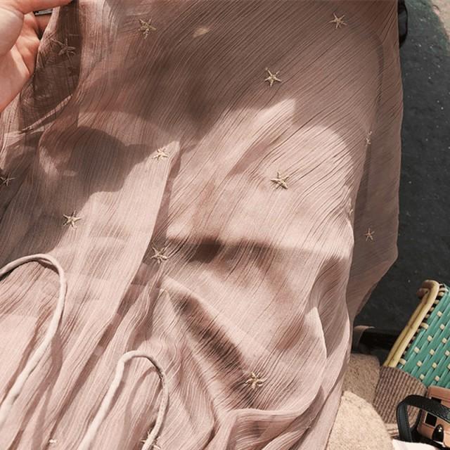 シアーなシフォンにさりげない星柄が大人可愛いワンピース。