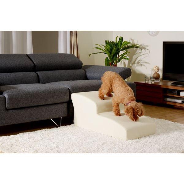 ドッグステップ/ペット用品 〔2段 アイボリー〕 幅40.5cm 合皮/合成皮革張地 ウレタンフォーム 〔リビング 室内犬〕〔〕