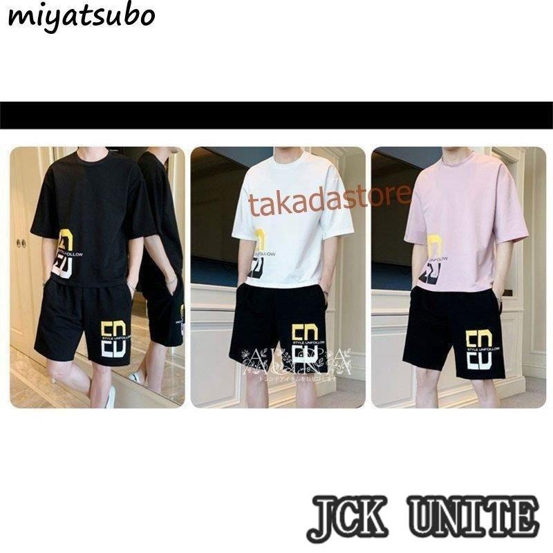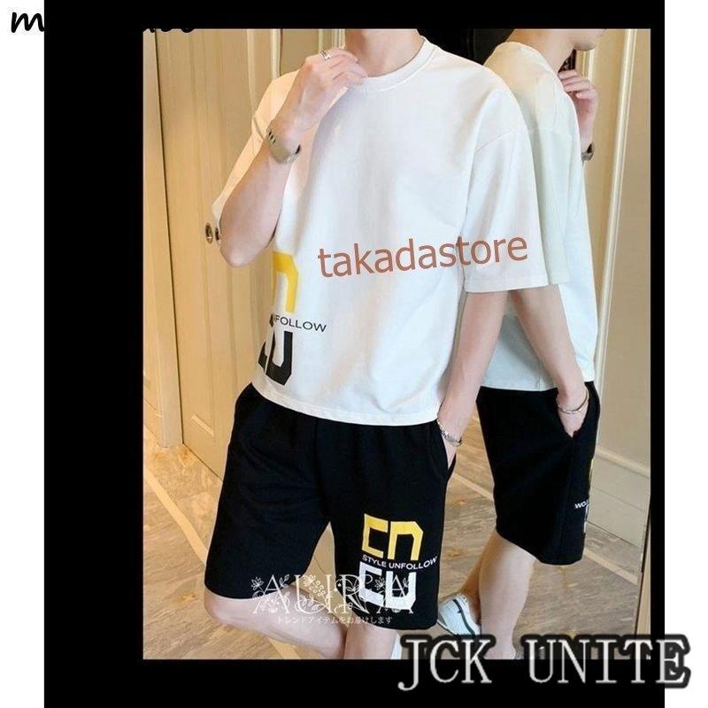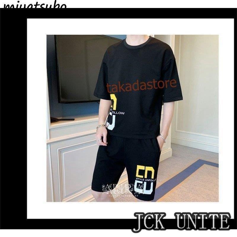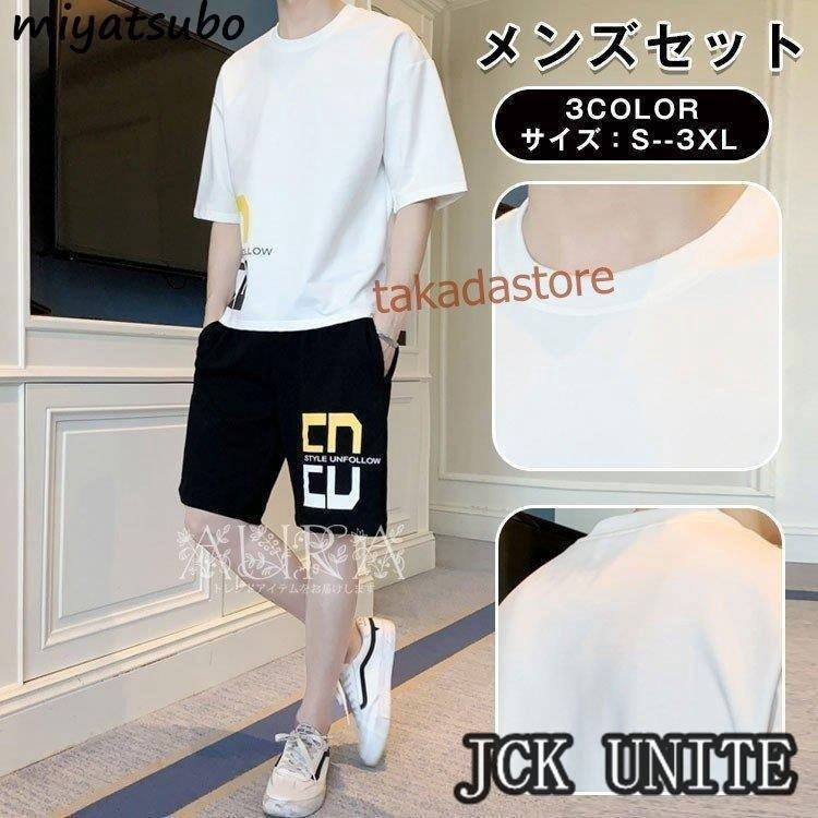 セットアップ メンズ ジャージ スウェット 2点セット ジャージセット 半袖シャツ 五分丈パンツ 部屋着 ゆったり 薄手 涼し 夏