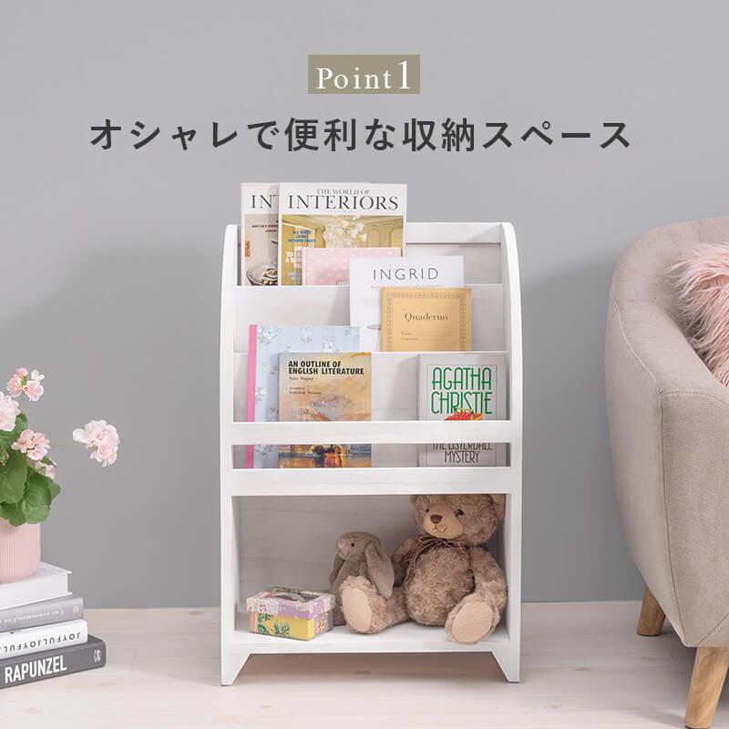 マガジンラック 本棚 木製 シンプル おしゃれ アンティーク ディスプレイ 収納 オープンラック 雑誌 本 子供部屋 リビング ホワイト MCC-6189