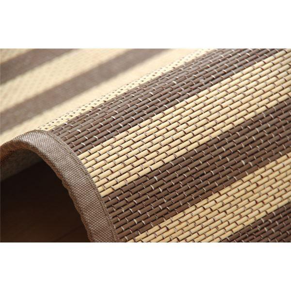竹ラグ/ラグマット 〔マリンストライプ ベージュ 約180×180cm〕 ウレタンフォーム 不織布 〔リビング ダイニング〕〔〕[21]