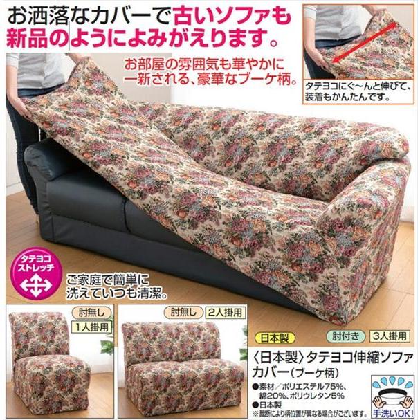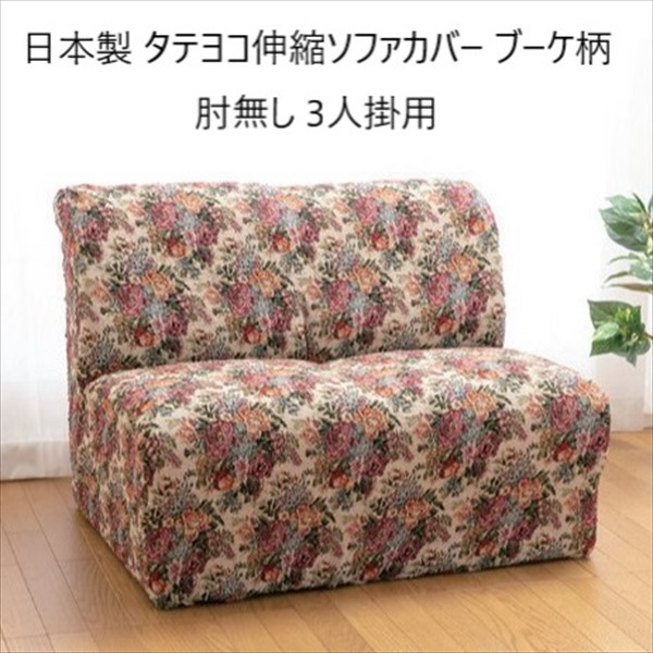 商品名:日本製 タテヨコ伸縮ソファカバー ブーケ柄 肘無し 3人掛用
