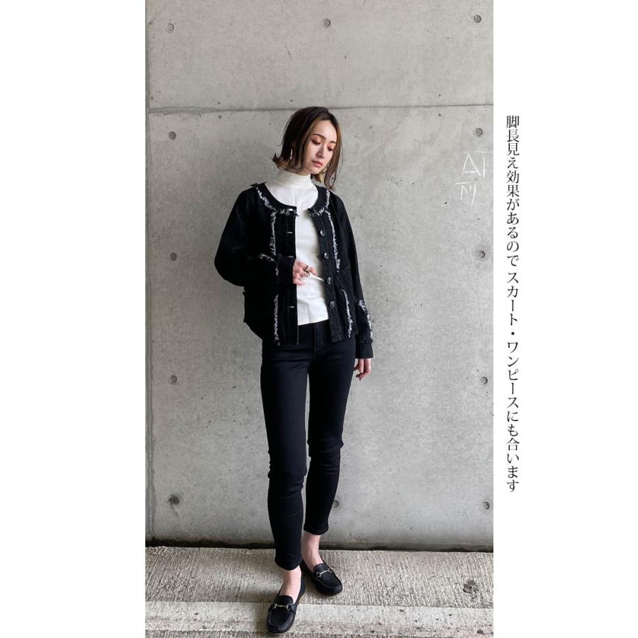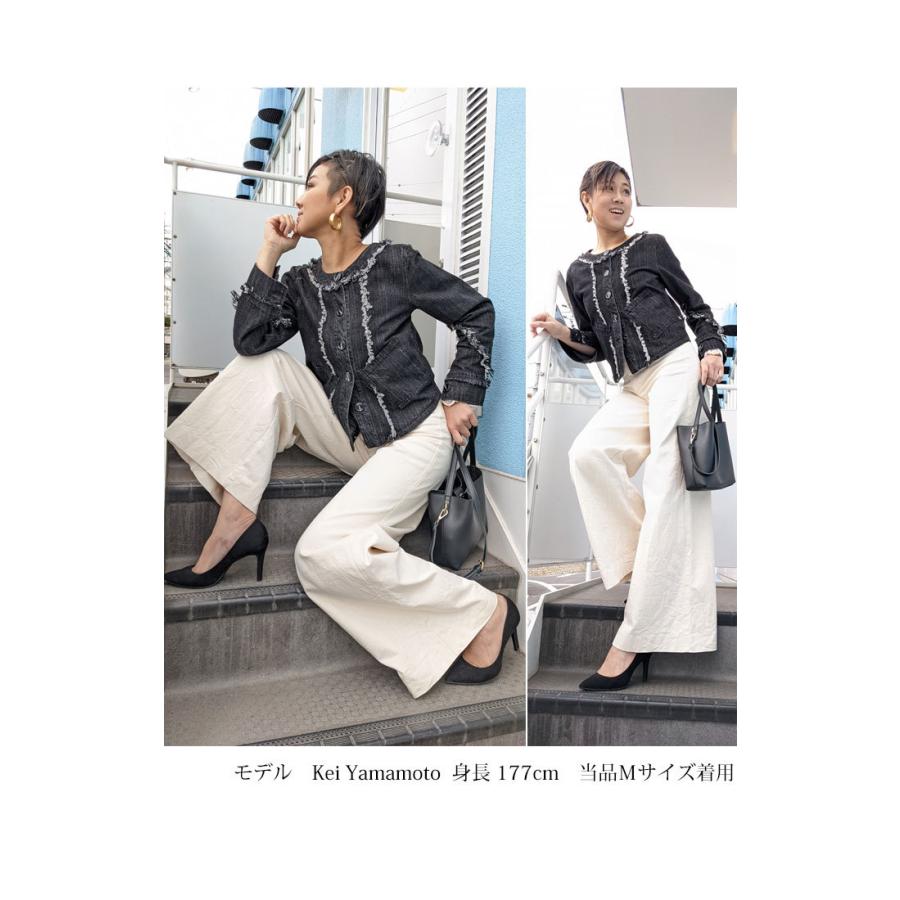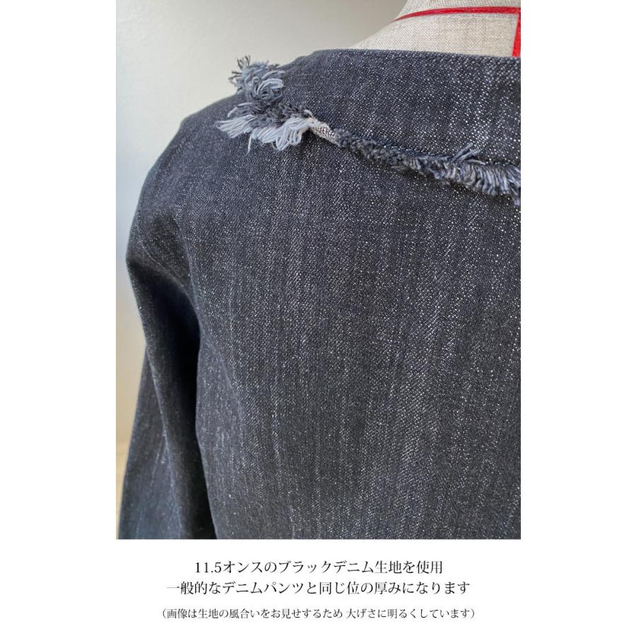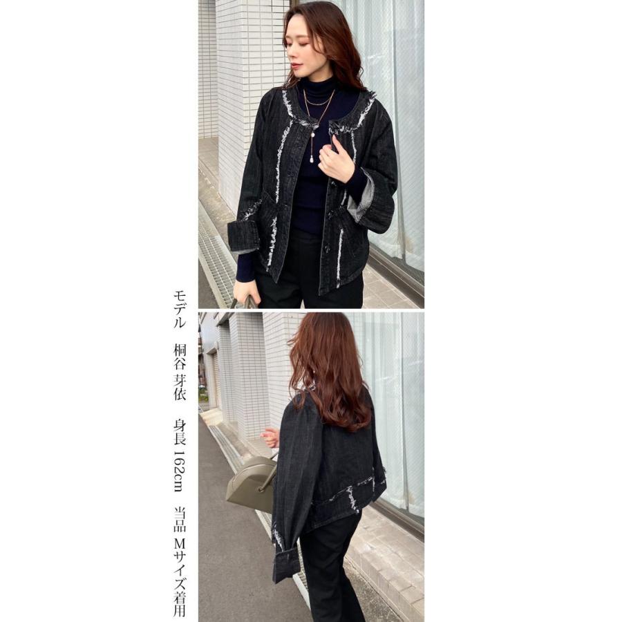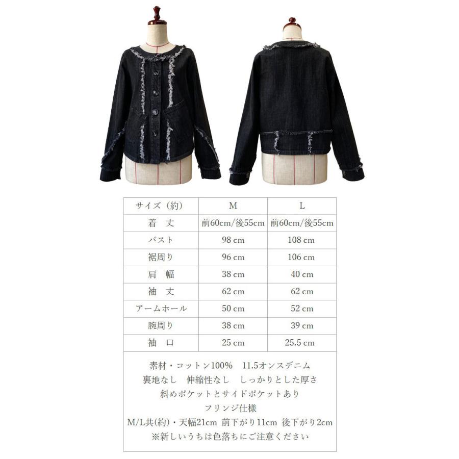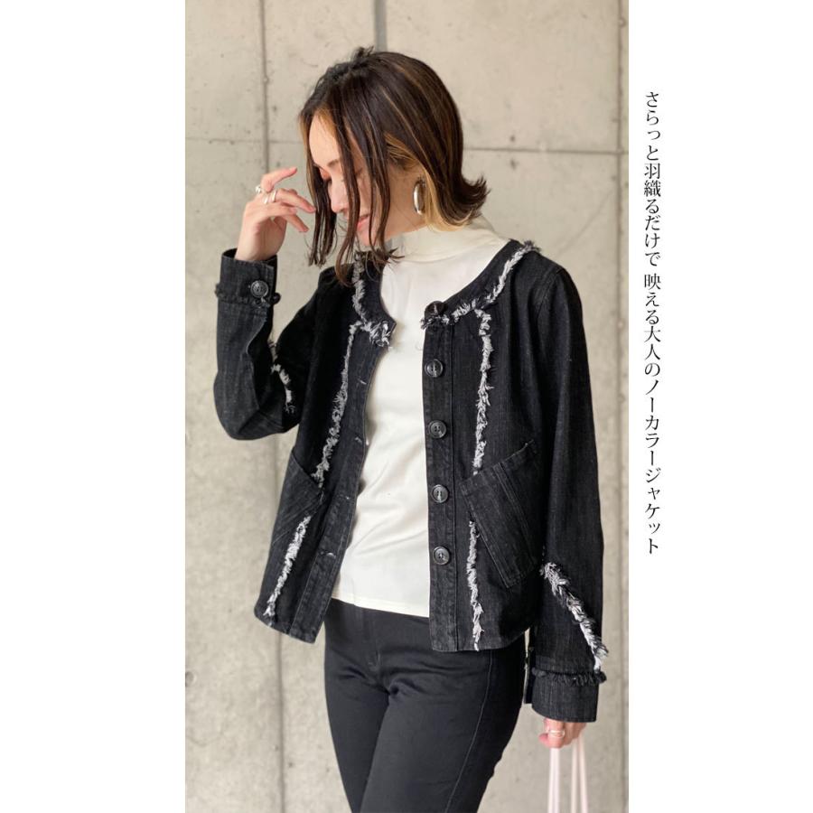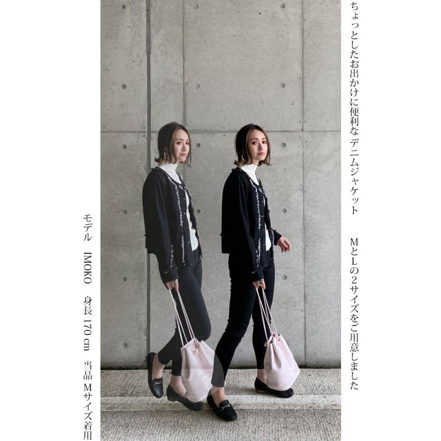 ライトブラック デニムジャケット コットン 万能ジャケット フリンジ スタイルアップ 映え こなれ感 ブラックデニム レディースファッション アウター