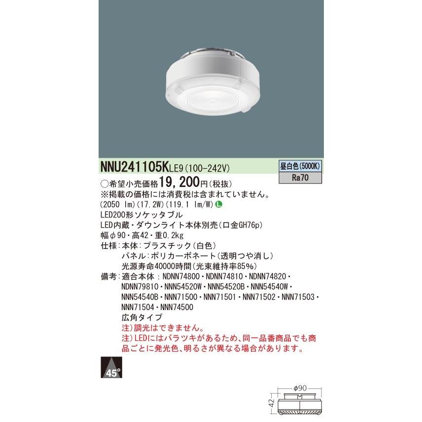 NNU241105KLE9 パナソニック LEDソケッタブル[非調光型](200形、広角、昼白色・5000K、Ra70)