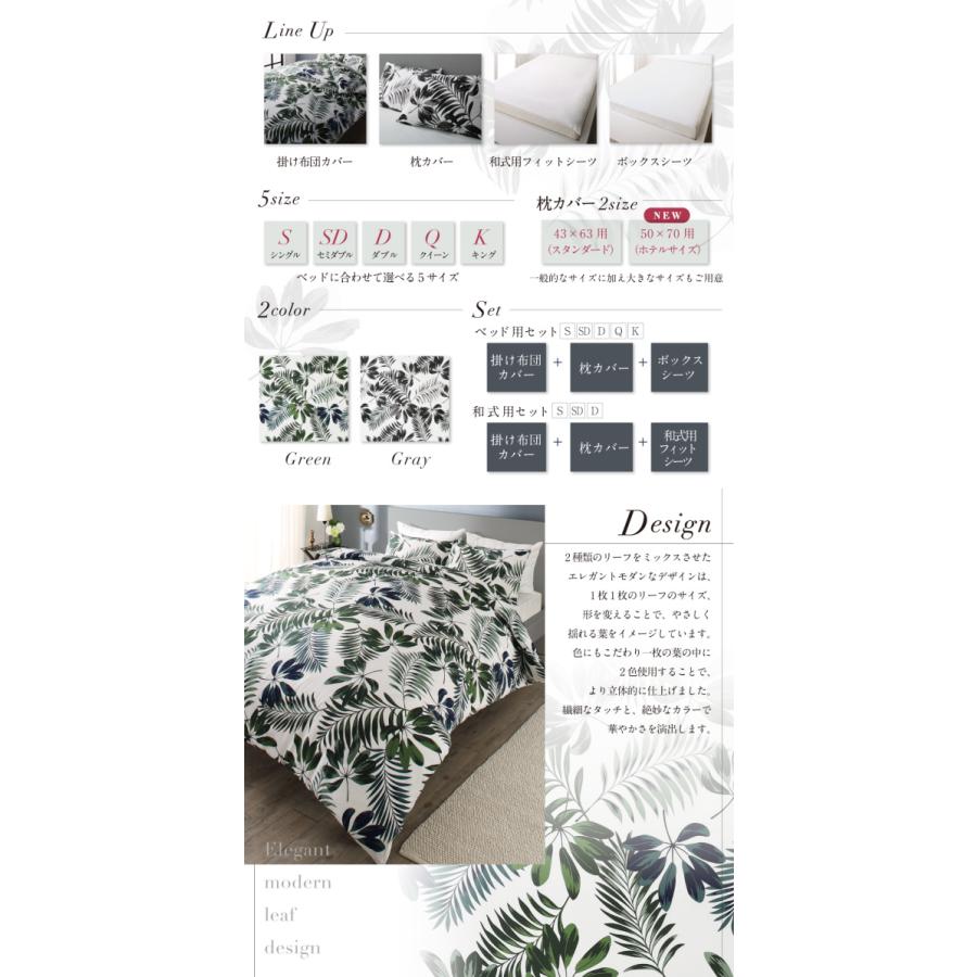 布団カバーセット/掛け布団カバー/掛布団カバー/ボックスシーツ/ベッドシーツ/ベッド用/枕カバー/ピローケース/日本製/国産/綿100%/コットン/洗える/ウォッシャブル/リーフ柄/エレガント