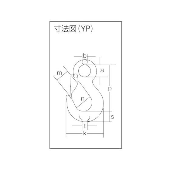 【商品説明】●過酷な使用条件にも強い特殊表面処理チェーンの採用で長寿命化を実現しました。●「プラスV級」ロードチェーンの採用でより安全になりました。(安全率5倍以上)●丈夫な外れ止め金具付です。【仕様】●型番:1-MFF-YP-10 ●基本使用荷重(t):2.5 ●チェーン線径(mm):10.0 ●有効長l(m):1.5 ●マスターリンク寸法(mm)a:80 ●マスターリンク寸法(mm)b:114 ●マスターリンク寸法(mm)p:141 ●スリングフック寸法(mm)a:32 ●スリングフック寸法(mm)k:104 ●スリングフック寸法(mm)m:35 ●スリングフック寸法(mm)n:46 ●スリングフック寸法(mm)p:121 ●スリングフック寸法(mm)s:31 ●スリングフック寸法(mm)b:15 ●マスターリンク寸法(mm)d:17 ●スリングフック寸法(mm)t:23 ●スリングフック寸法(mm)m’:40 ●ラッチ付き ●スチール <ジェットプライス>