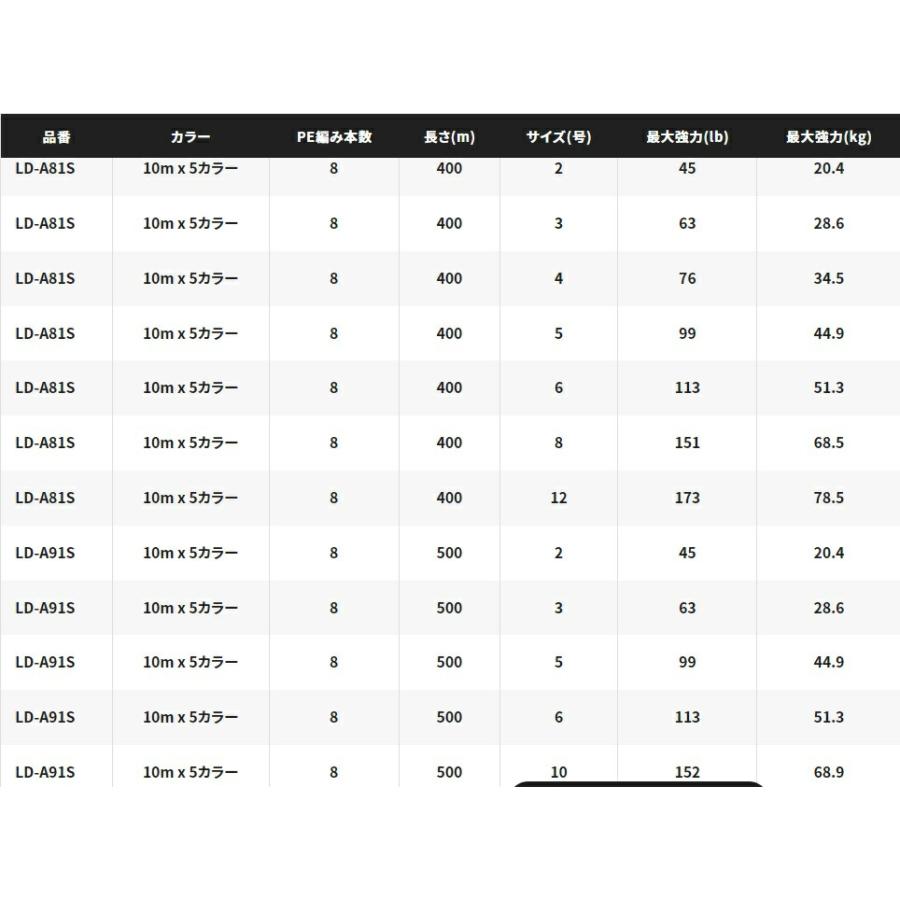 シマノ (shimano) オシア 8 PE LD-A81S 6.0号 113lb 400m 10m x 5カラー ※画像は各サイズ共通です。