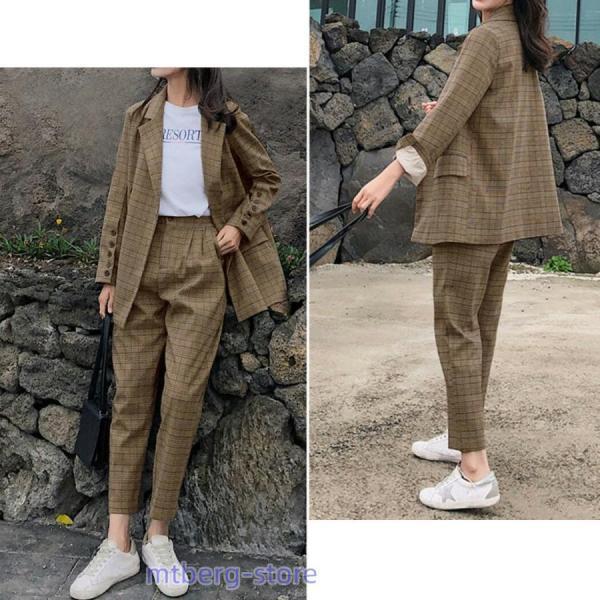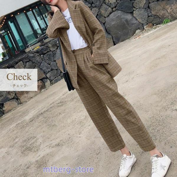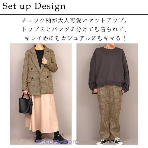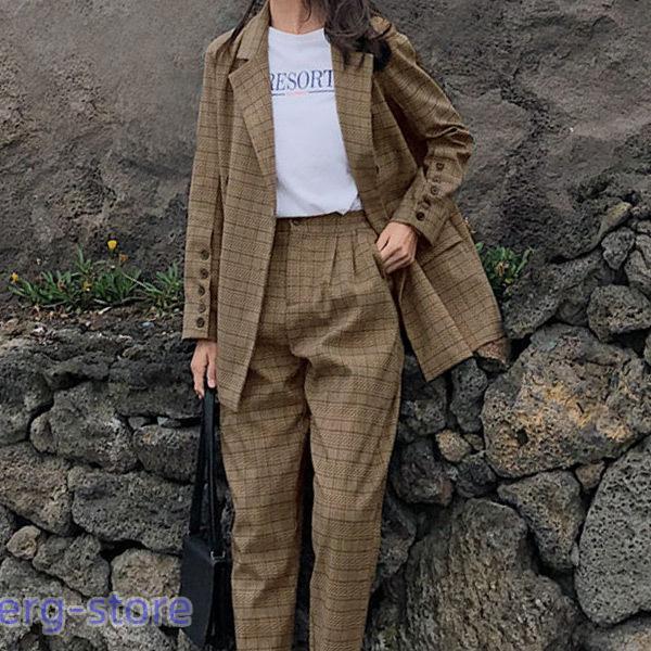 グレンチェック エレガント オフィス フォーマル シンプル キレカジ フェミニン 普段使い 袖口ボタン ポケット×4 暖かい 中厚手 秋 冬■セット内容?2点セット?ジャケット?パンツ ■商品紹介レディース ジャケットセットアップ\オンオフ使えるチェック柄/トップス&パンツ セットアップSet up Designチェック柄が大人可愛いセットアップ。トップスとパンツに分けても着られて、キレイめにもカジュアルにもキマる!Item:ジャケットどんなボトムスにも合うシンプルデザイン。きちんと感あるテーラードジャケット。Item:パンツタック入りで立体感のあるパンツ。カジュアルな着こなしにもGOOD!\Point.01/オーバーサイズゆったりした着心地で抜け感をプラス+羽織としても使える◎\Point.02/体型カバー?長め丈でお尻がすっぽり隠れる!?テーパード気味のシルエットで、 脚のラインを綺麗に魅せる。\Point.03/着回し力抜群!