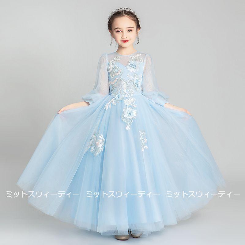 子供 ドレス ピアノ発表会 女の子 子供ドレス シャンパン ブルー ワンピース 衣装 結婚式 コンクール 発表会 パーティー フォーマルドレス キッズドレス お姫様