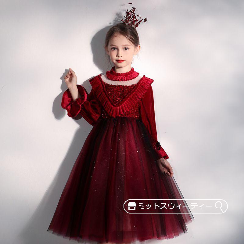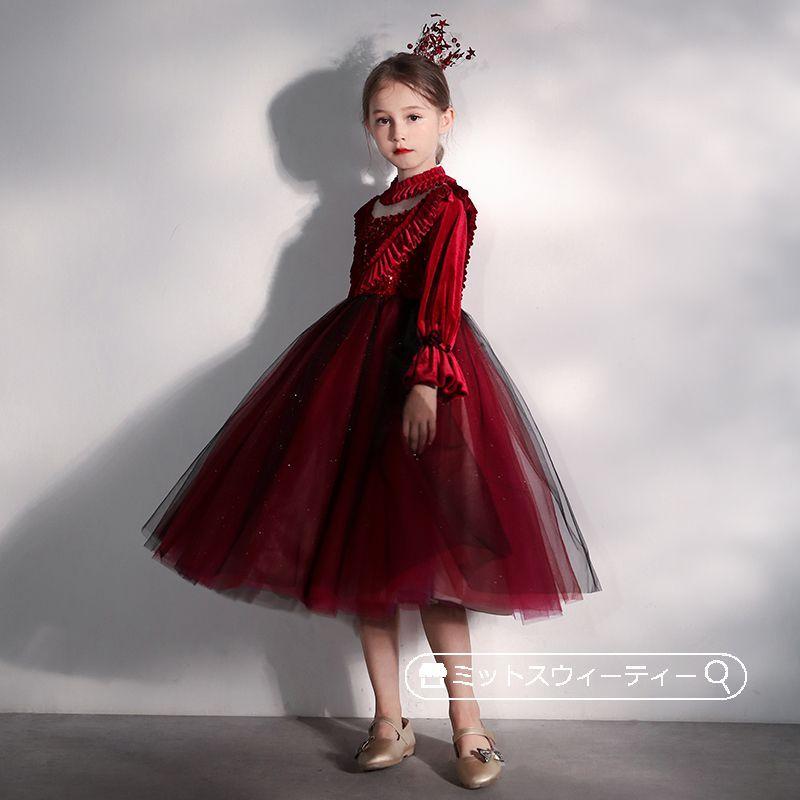 発表会 子供ドレス 女の子 フォーマル ワインレッド 結婚式 ワンピース 子ども キッズドレス パーティドレス フォーマル クリスマス カクテルドレス ベルベット