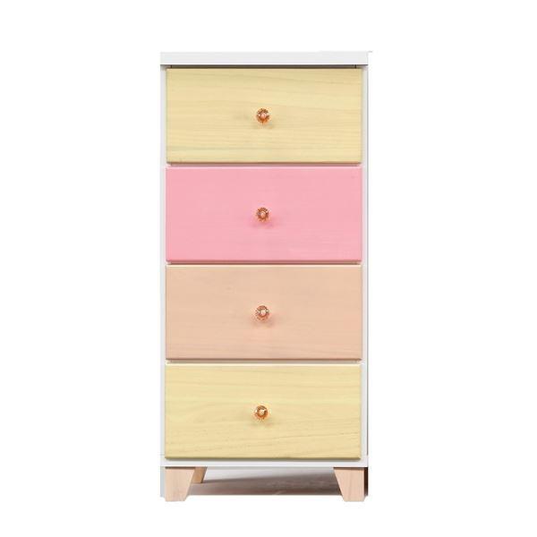 スリムチェスト タンス 4段 幅39cm ピンク系 日本製 木製 桐材 引出し収納 子供部屋 ベッドルーム 寝室 リビング 完成品