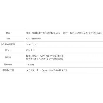 スマートラック NSTR-K457 キャスター付き 間口800×奥行450×高さ1235mm 4段 ホワイト