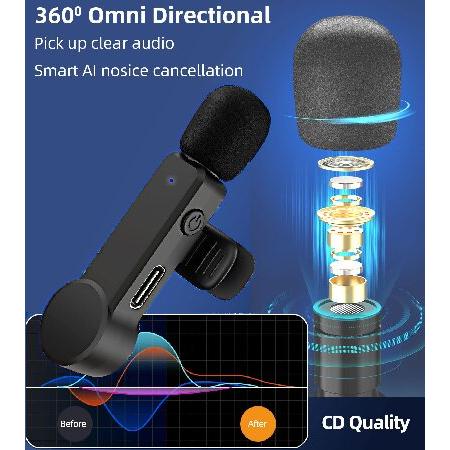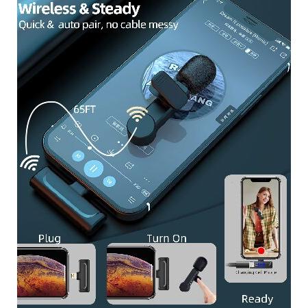 ・Microphone Noise Canceling: upgraded smart noise reduce chip inside, this phone external microphone record clear voice, a very convenient condenser wireless clip lapel mic for iPhone, iPad