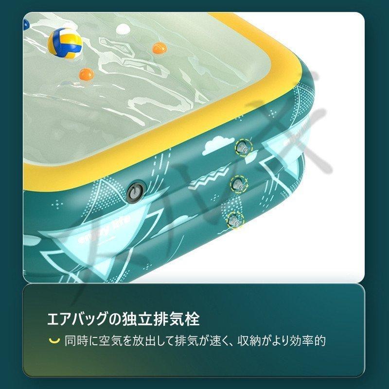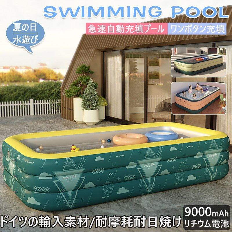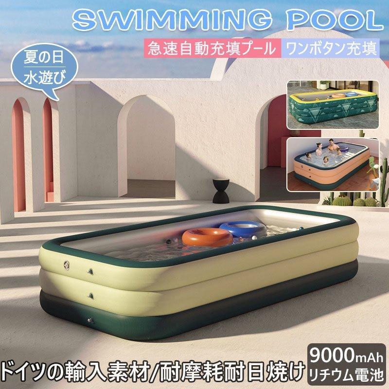 商品名:自動充気エアプール色:エメラルドグリーン、ライトグリーン、ピンク、タイプ:2.1m、2.6m、3m素材:PVC耐高温:70℃サイズ 外径CM 内径CM 適用人数 容量L2.1m 210*145*60 155*98*58 1-4 5272.6m 260*170*60 216*125*58 1-6 6803.0m 300*175*60 250*130*58 1-8 1238エアポンプ:消費電力50W、ワイヤレス蓄電式、手動不要、アウトドア使用可能キーワード検索:エアプール プール 水遊び 子供用 家庭用 ビニールプール 3つ気室 滑り止め ファミリープール 耐摩擦 安全無毒 耐高温 夏の日 家庭用プール 滑ること防止 大容量 大型プール 自宅 屋外 暑さ対策"}