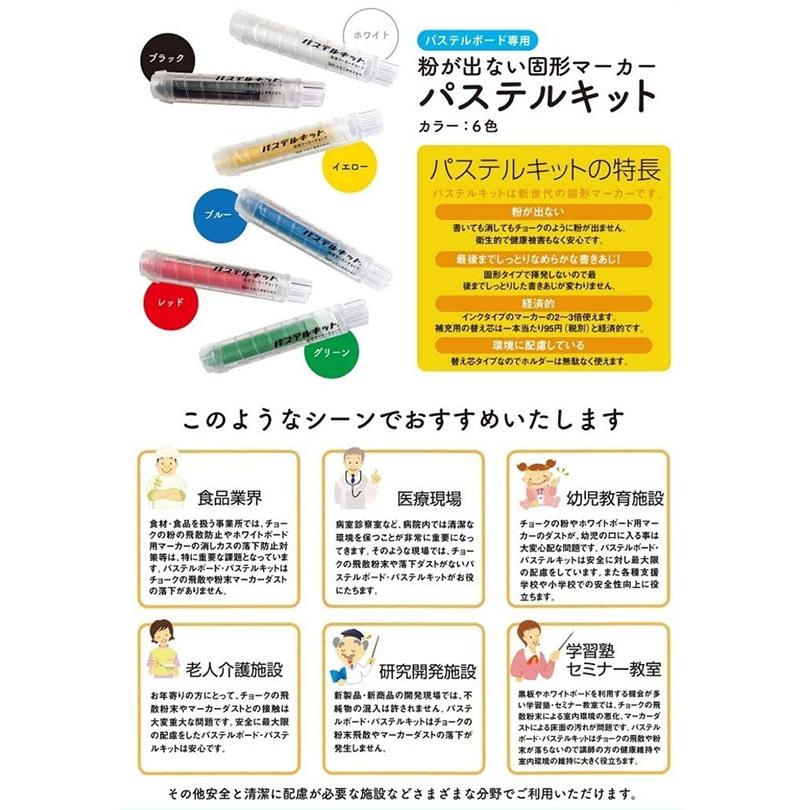 従来のホワイトボードや黒板とは板面自体が異なり、パステルキットの使用で【ダストレス効果】が得られます。耐久性もあり、しかも信頼の日本製です。食品業界・医療現場・幼児教育施設・老人介護施設・研究開発施設・学習塾等で清潔に配慮が必要な施設で活躍できます。低光沢で見やすく光線の反射が少なく、耐摩耗性に優れ、高耐久・長寿命。メーカー:san-k品番:PG-60Wサイズ:W600×H450mm付属品:パステルキット6色、ラーフル(黒板消し)1個、マグネット3個材質:鋼板原産国:日本製