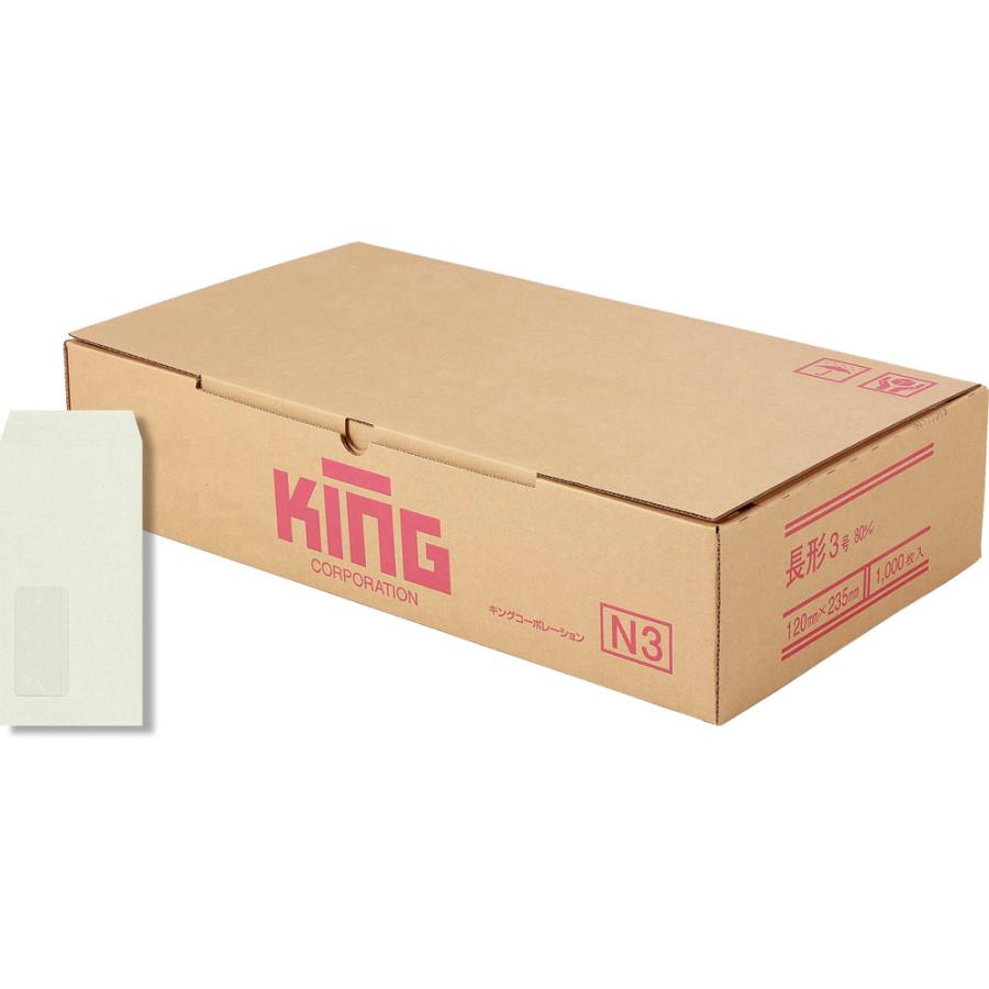 長形3号封筒 Hiソフトカラー 80g 窓付き センター貼 テープ付 グレー 1,000枚 キングコーポレーション 封筒 長3