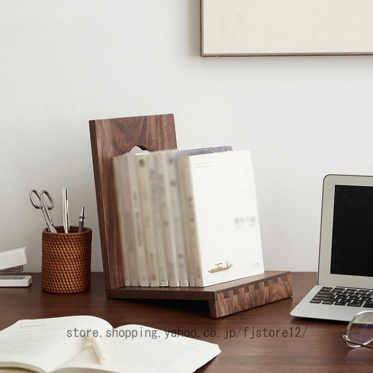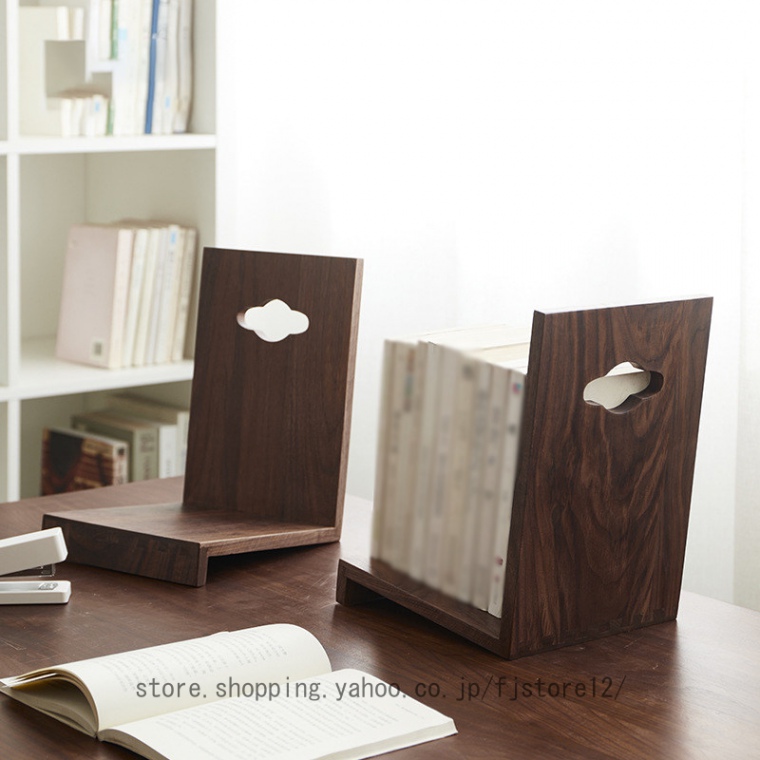 斜めに本を収める 傾いているので本が倒れない ブックスタンド インテリアとしてもおしゃれな天然木のブックエンド 木本立て 木製卓上本棚ブックエンド 木製