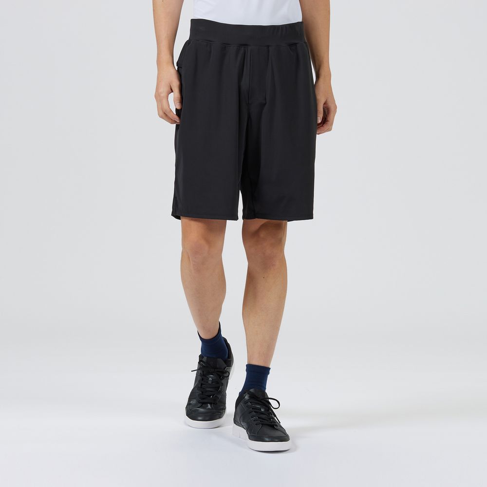 高機能マルチウェイストレッチニット素材を使用したショーツです。特殊編地により、極薄でしなやかなストレッチ性能を両立した素材です。極薄、軽量でありながら透けにくく高いUVカット機能(UPF50+)があります。また、ウエスト部分のフィット感を締め付けすぎることなく向上させるために、幅広ゴムを使用しています。広い面積で接触することで様々な動きに追随する安定したフィット感を感じることができます。脇両側にポケットがあります。脇ポケットは内側で袋布をストレッチ素材でつなげた独自の形状でボールのHOLD性に優れ、出し入れの際も袋布がポケット口から外側に飛び出しにくくい設計です。