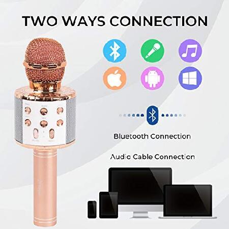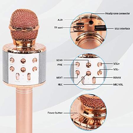 JMFinger Karaoke Microphone for Kids and Adults, Wireless Portable Handheld Bluetooth Microphone with LED Lights - Best Gifts (Rose Gold)