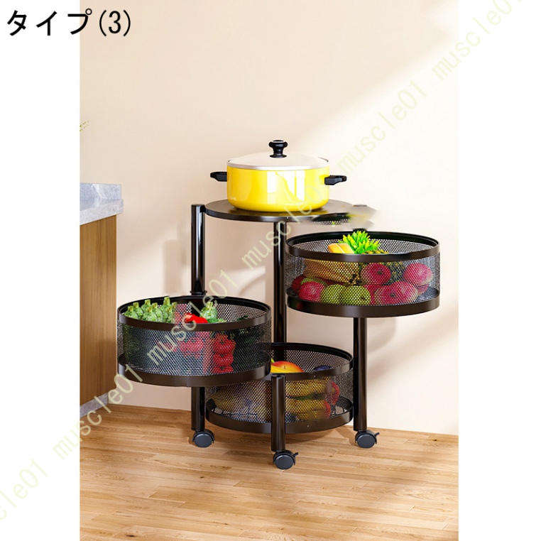自由回転バスケットと360°自由回転ホイールデザインでスペースを取らなく、使用はとても便利です。バスケットは穴付き中空アウトデザインで通気性がよく、お掃除が簡単で、湿気が多い場所でも安心!使用範囲が広くて、キッチン、バルコニー、寝室、トイレ収納、子供部屋、リビングルーム、書店、美容室等で、使用可能です。【大容量収納】くるっと回して出し入れ引き出しより簡単です!大容量なので、出しっぱなしになりがちなモノをひとまとめに収納できます。スッキリきれいに片付けたいでも必要な食材や道具はすぐに使いたいそんな悩みをこのワゴンが解決!【キャスター付きで移動便利】4つのキャスター付きで360°自由に回転し、方向転換もスムーズです。部屋の掃除などに面倒をかけません。キッチン・リビング・洗面所・寝室・トイレまでの整頓にも便利です。ブレーキ付きキャスターなので安心、安全です。"}