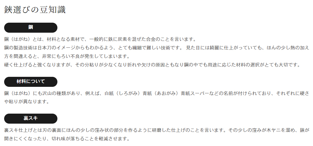 デメリット:白紙に比べ価格が高い・非常に硬いため研ぎにくい