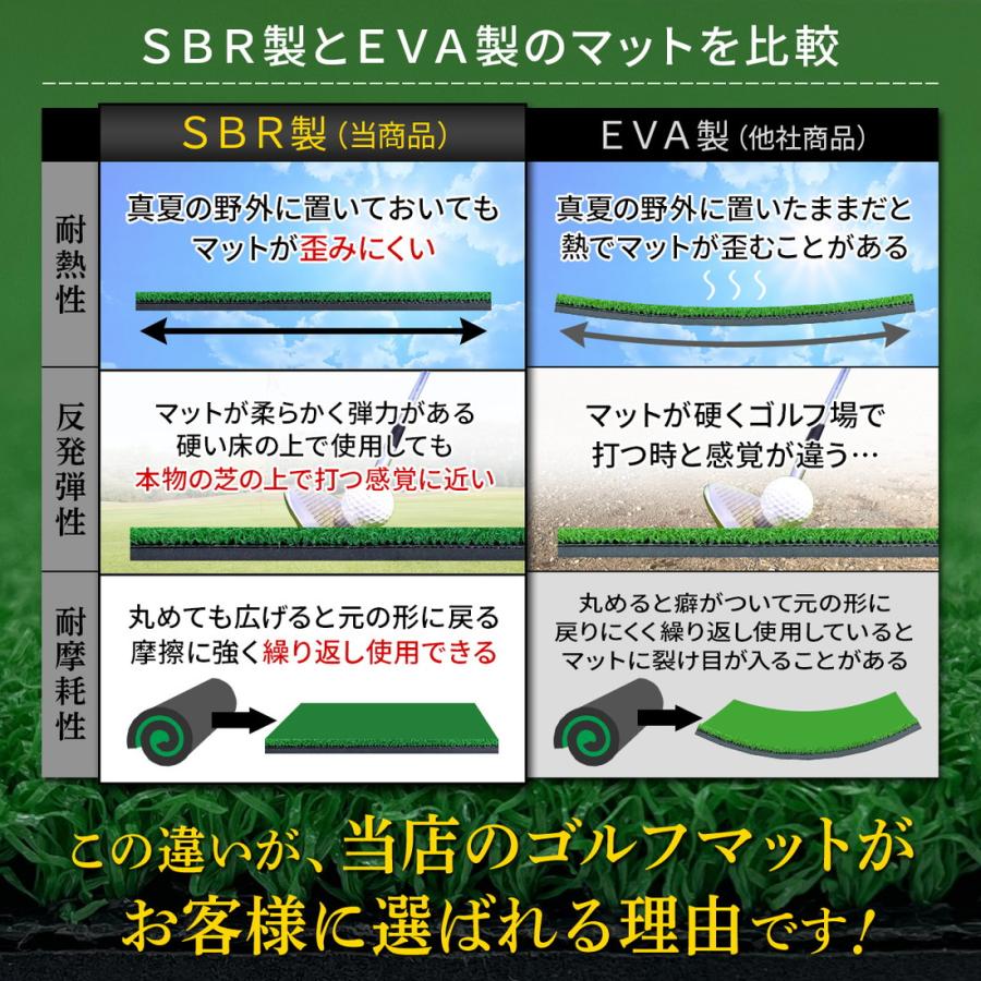 表面の人工芝は叩いてもへたれにくい、長く使えるポリプロピレン人口芝を使用、裏面は柔軟性があり、踏んだ時のリアルな芝感を実現したSBR製マットなので、グリーン上に似た感覚でショット練習ができます。