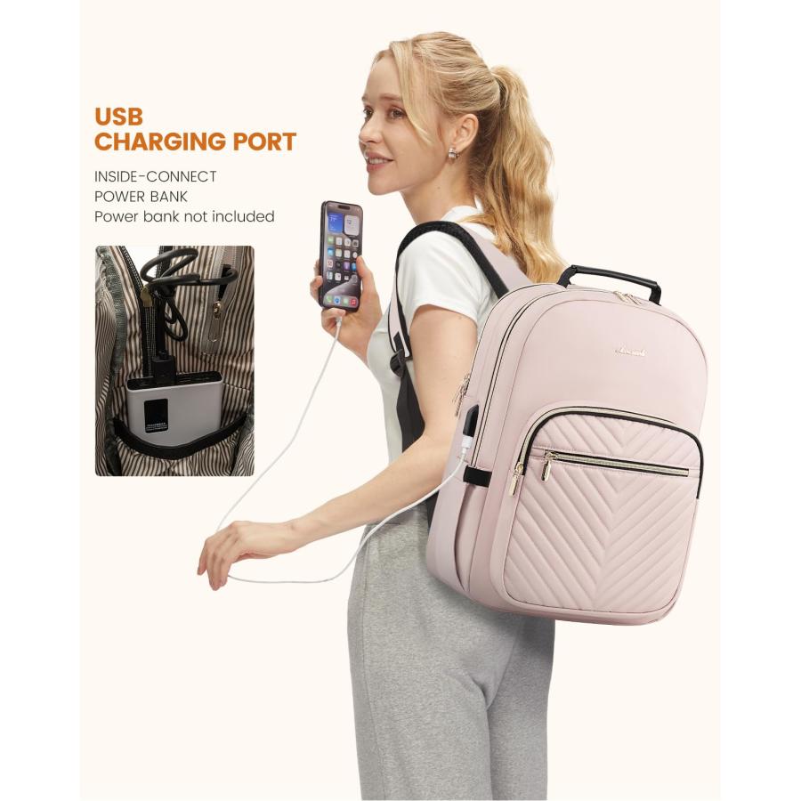 LOVEVOOK Laptop Backpack Purse for Women, Work Business Travel Computer Bags, College Nurse Backpack for Womens, Quilted Casual Daypack with USB Port,
