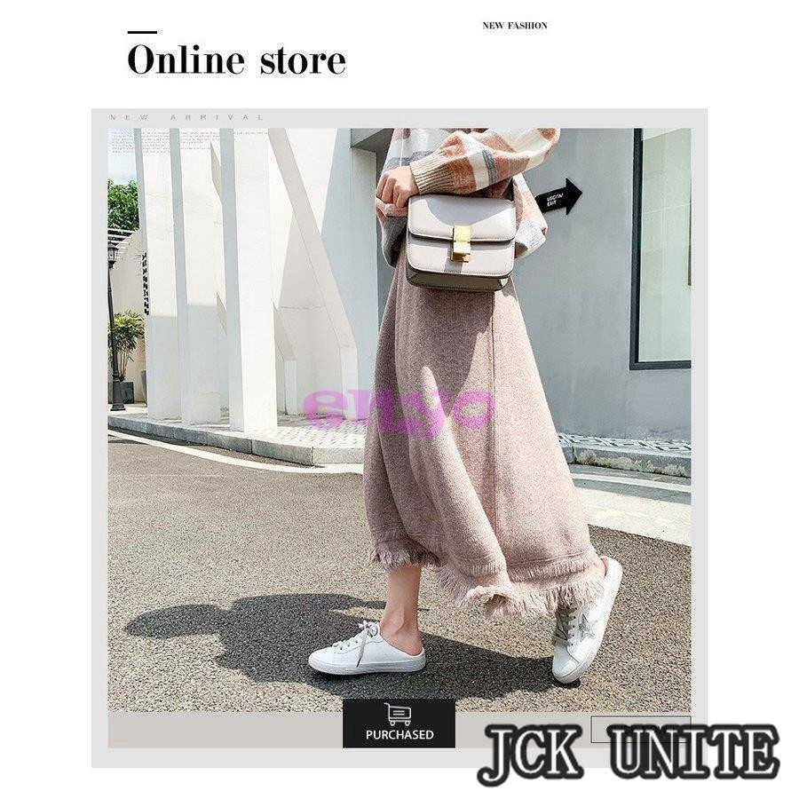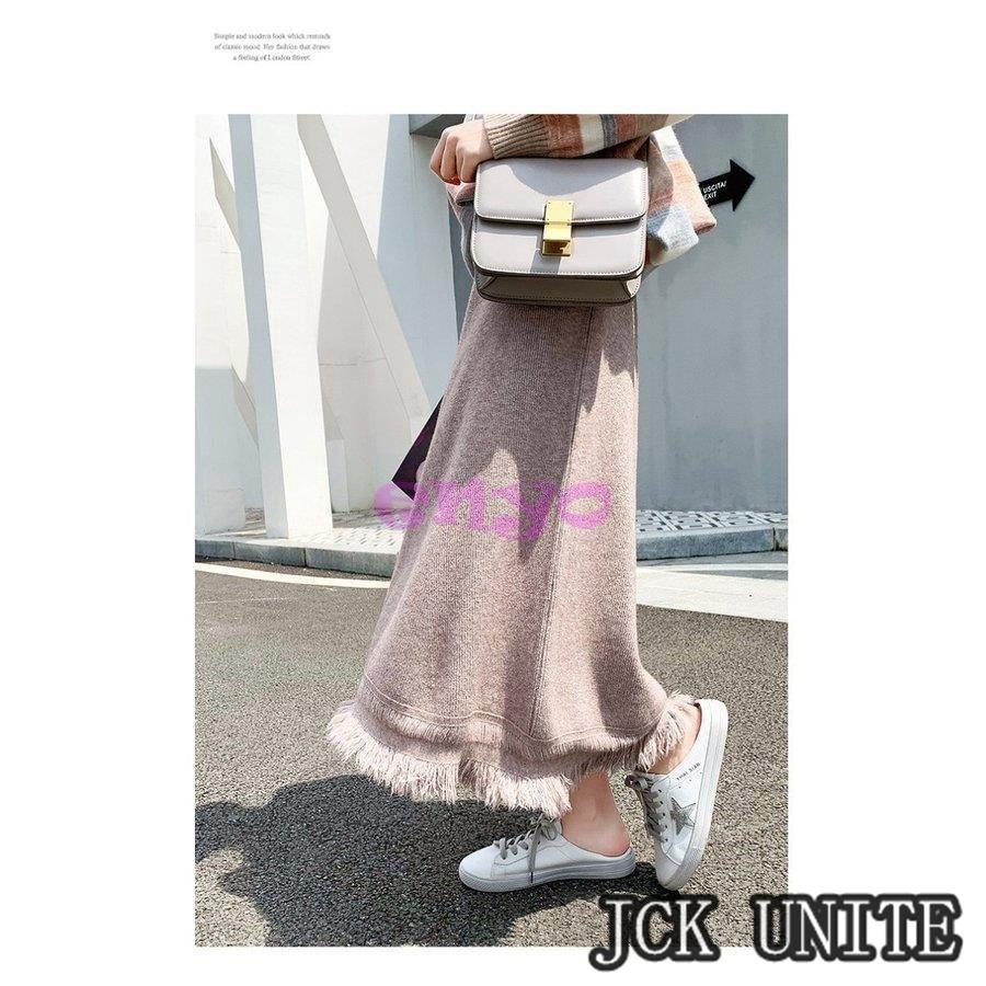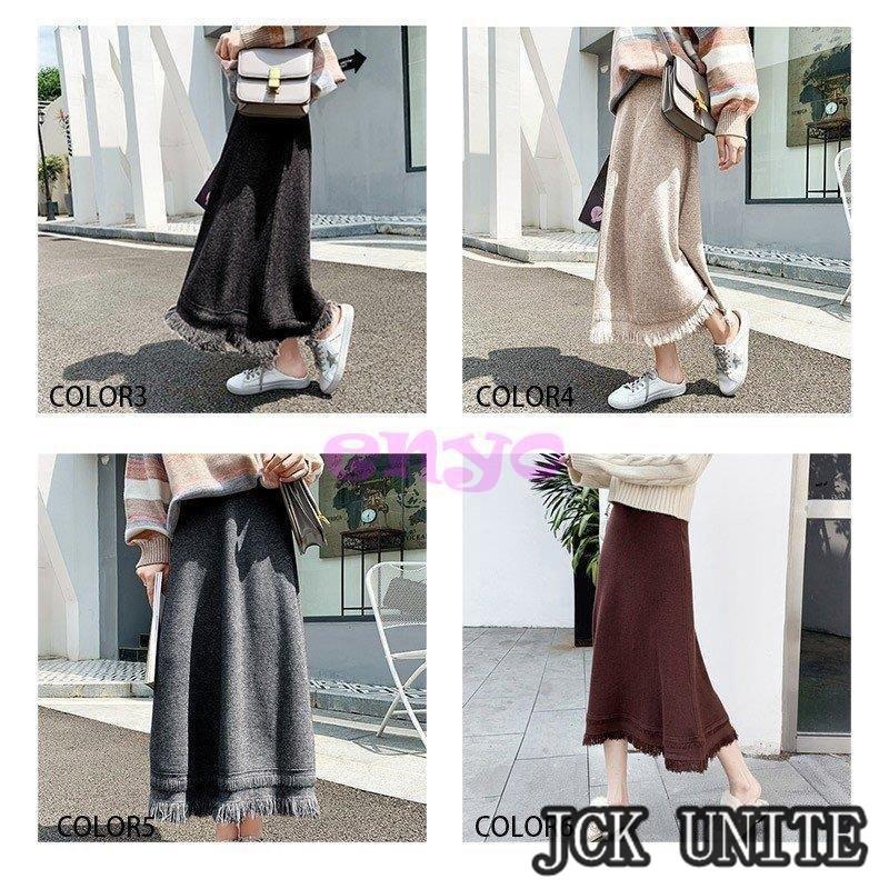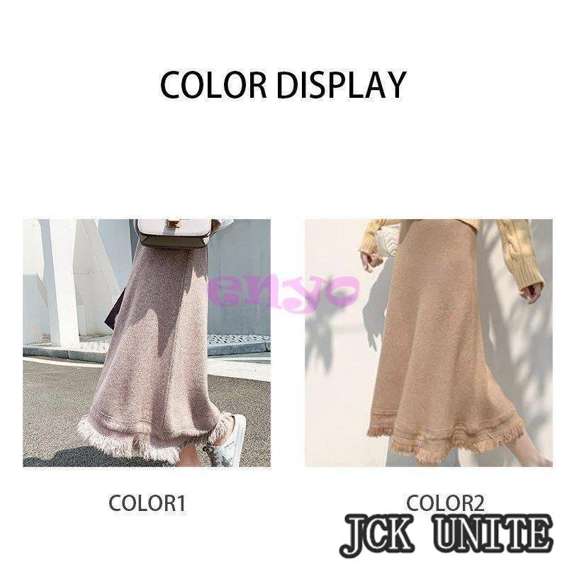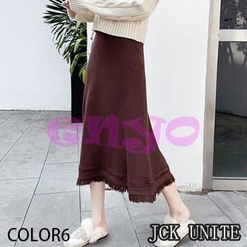 スカート ニットスカート ロング丈 フレアスカート ミモレ丈スカート aライン ウエストゴム 厚手 膝下 ボトムス ニット 無地 オシャレ 秋冬