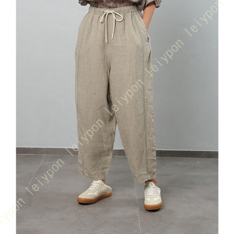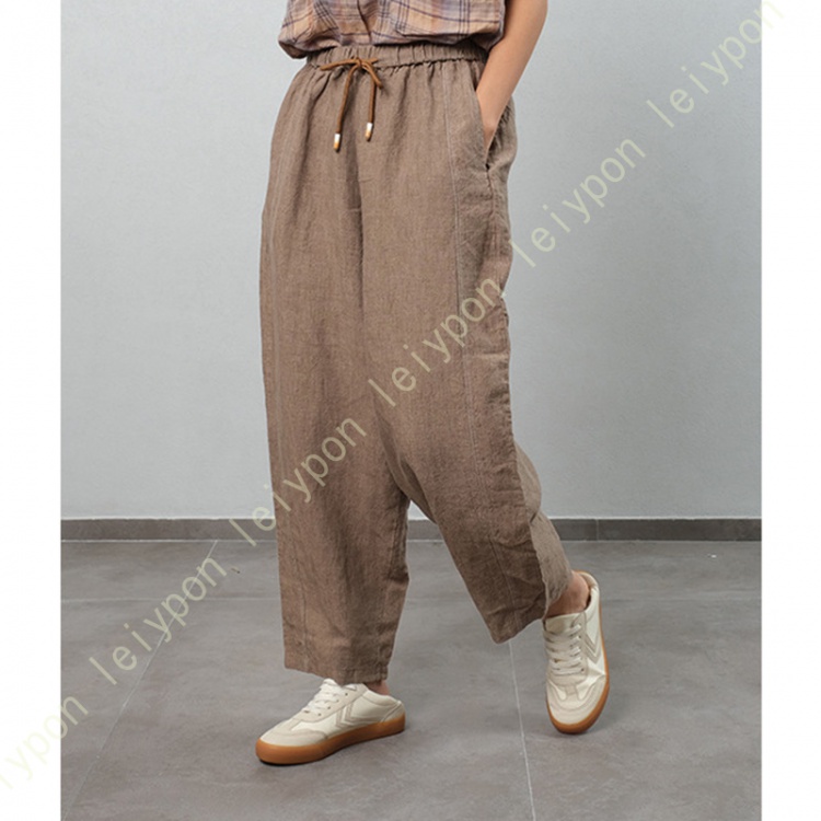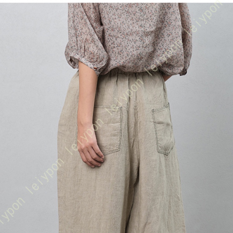 ング丈 ワイドパンツ レディース 麻 リネンパンツ ガウチョパンツ ストレートパンツ ロング パンツ 柔らかい ウェストゴム カジュアル 脚長効果 着痩せ