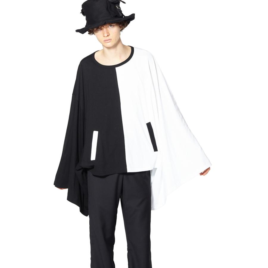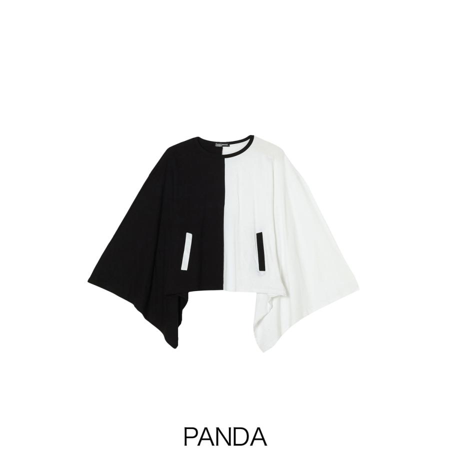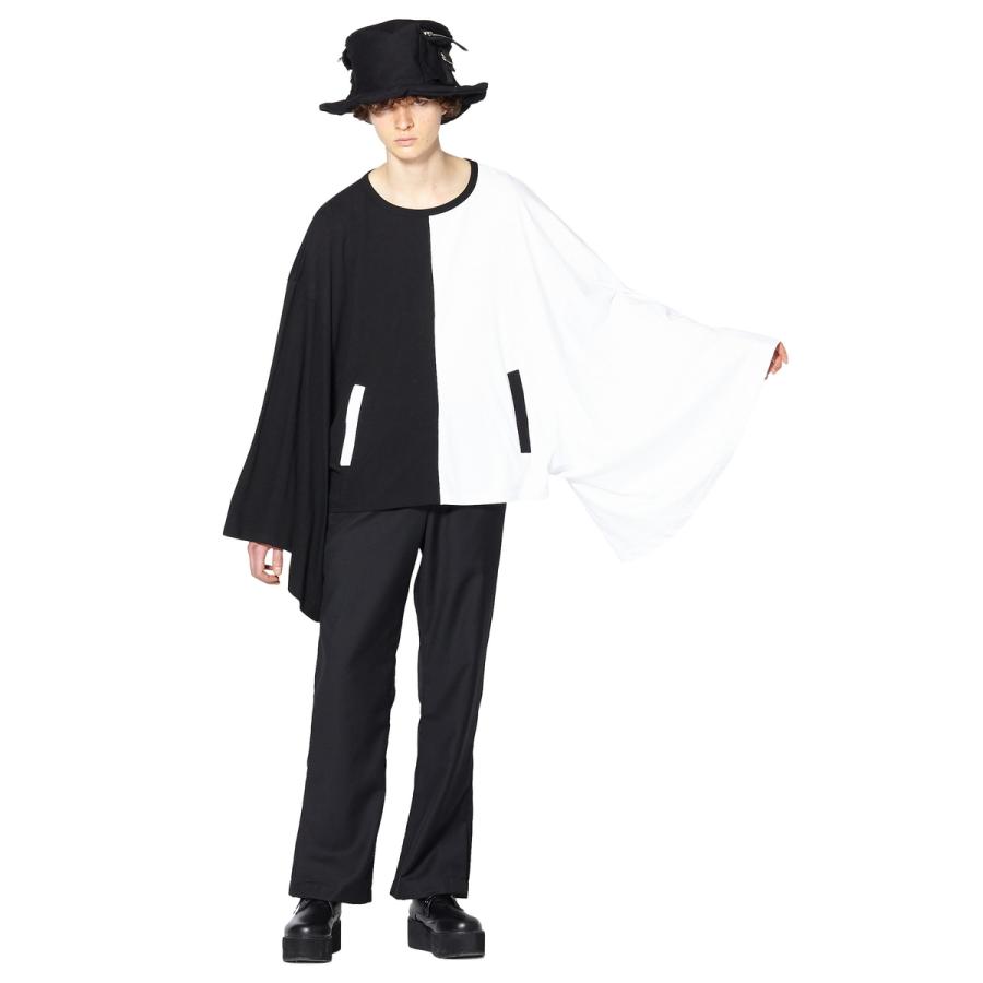 PANDAキモノアームカットソー -ショート&ビッグ-クラシカルな天竺コットン素材×定番のロングスリーブTシャツ/カットソー。アームを伝統的な和服の着物のパターンで構築したアッパーなモードスタイルが独創的。ダッポリとした極ワイドな身幅、滑らかに肩を落としたドロップショルダーのルーズなフォルムバランス、すっきりとしたショート丈のスーパービッグシルエット/オーバーサイズが印象的。【PANDA/パンダ】がコンセプト。中央からバッサリ切り替えた黒白モノトーン配色のアシンメトリーフェイスがマッドポップ。ボディーと反転させた配色のポケット付き。 【サイズ】onesize【onesize】着丈:約62cm肩幅:約72cm首元〜袖口:約80cm 【素材】綿:100% 【カラー】PANDA 【モデル】メンズ:186cmレディース:167.5cm"}