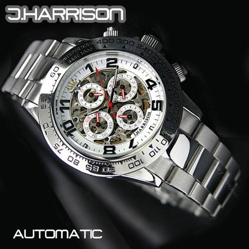 ☆J.HARRISON 機械式多機能両面スケルトン時計 JH-003SW