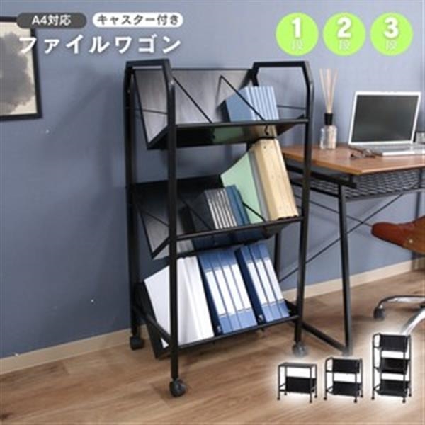 ファイルワゴン ブラック 不二貿易 ファイルワゴン3段 ブラック (17613)