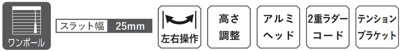 ネジの穴を開けたくない場所や、浴室等でネジ留が出来ない場所におすすめです。25mm幅のアルミ製スラット(はね)の角度を調節することで、調光や外からの視線をコントロール。夏におすすめの遮熱スラットは標準スラットと同価格が魅力!