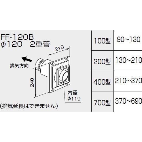 ノーリツ 給排気トップ FF-120Bアダプターφ120 二重管/200型 壁厚130〜210ミリ 0700398 NORITZ
