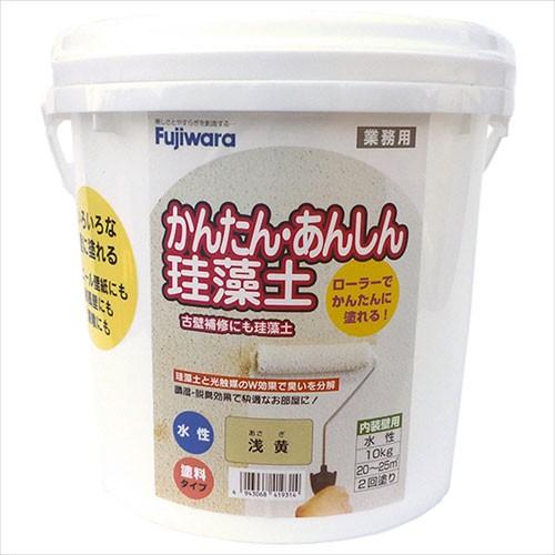 ローラーで簡単に塗れる!天然の珪藻土を主成分にした、人にやさしい塗料タイプの壁材です。揮発性有機化合物(シンナー)を使用しない水性タイプです。センイ壁やジュラク壁の上にも、ローラーで塗ることができます。下地の凹凸模様は残ります。調湿・脱臭効果があり、快適なお部屋づくりにおすすめです。※塗ることのできる下地:ビニールクロス、石こうボード、しっくい、コンクリート、モルタル、合板、コンパネ、センイ壁、ジュラク壁、砂壁、標準施工面積(2回塗):20〜25m2乾燥時間:1回目2時間、2回目12時間(20℃)内容量:10kg色:浅黄材質:アクリルエマルジョン、珪藻土、他ふじわら化学 / fujiwara chemical