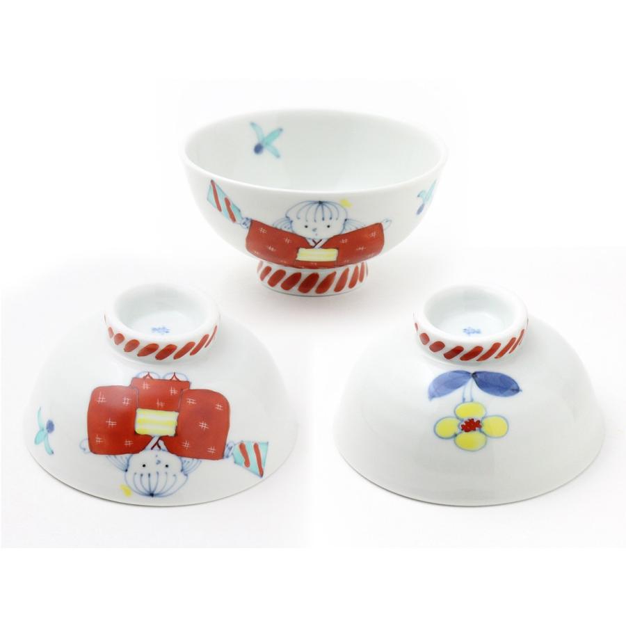 有田焼 名入れ子供食器 晴れ着女の子 4点セット[B]【福珠窯(有田焼窯元)】ネットショップ限定セット ご出産祝い お食い初め ご入学祝い