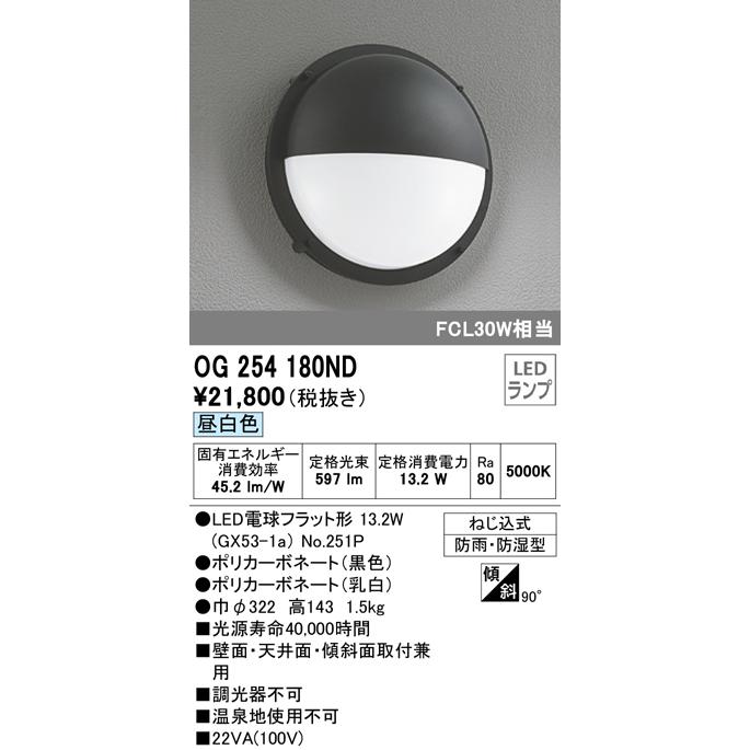 住宅用照明器具 オーデリック アウトドアライト OG254180ND 検索用カテゴリ9 【LED照明】 【昼白色】 【防雨】 【防湿】 【非調光】 【傾天】昼白色