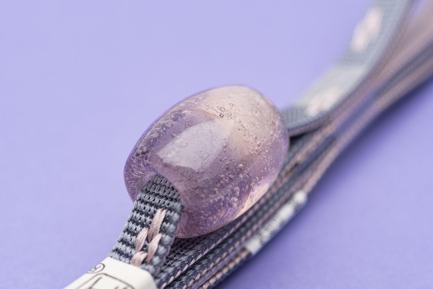 五嶋紐 三分紐 ガラス帯留め 【琉球ガラス 紫薄紫 薄紫紐】