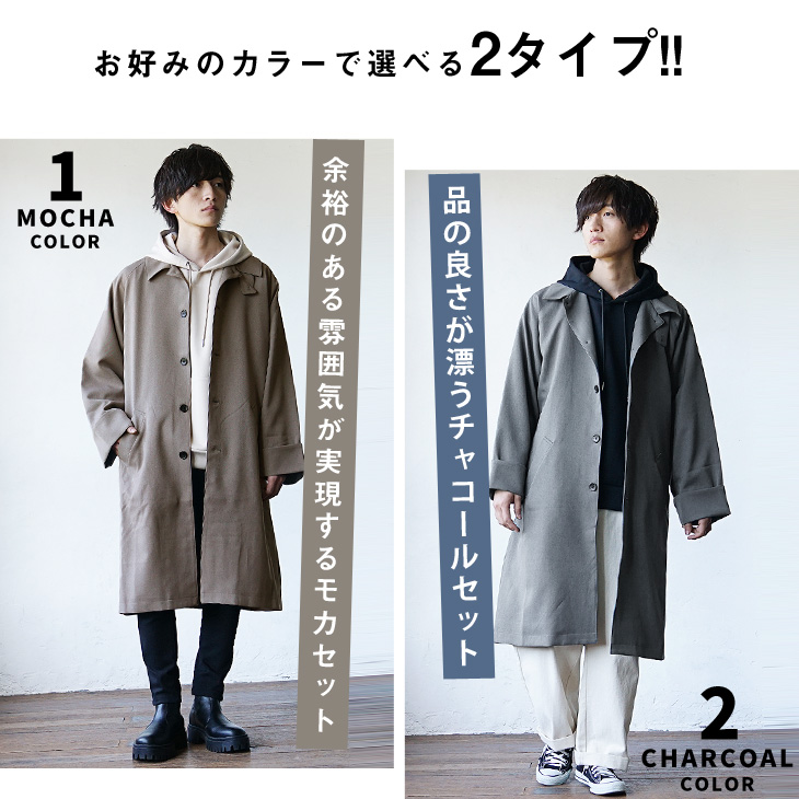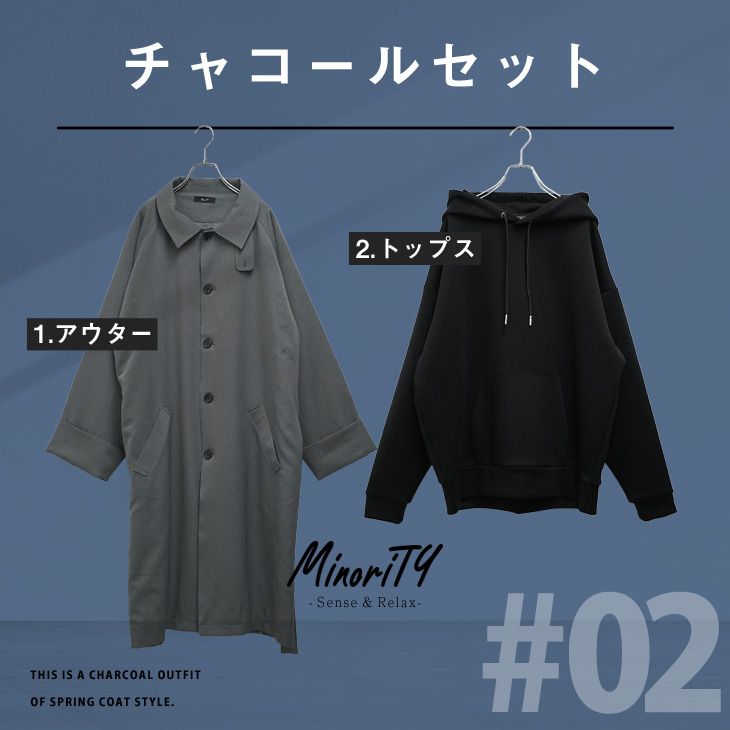 【送料無料】 オーバーサイズ スプリングコート メンズ パーカー メンズ オーバーサイズ 秋 2点セット ステンカラーコート 秋服 ビッグシルエット