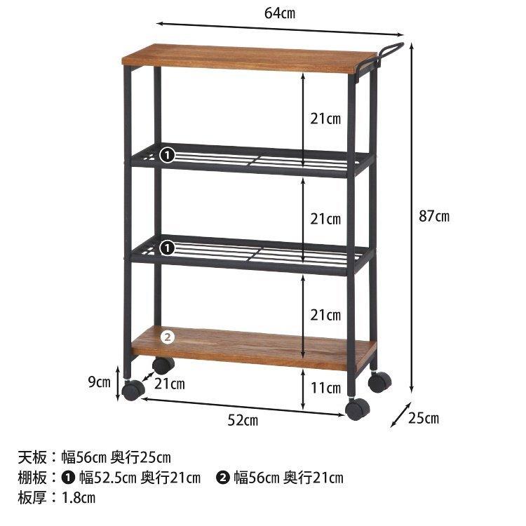 ワゴンラック おしゃれ 4段 キャスター付き ブラウン