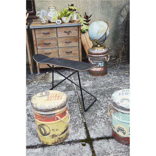 スツール オットマン 幅81cm スケートボード型 ブラック 木製 スチール リビング ダイニング インテリア家具