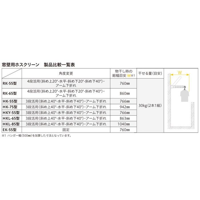 物干し竿受け 壁付け 物干し 屋外 ベランダ 川口技研 窓壁用ホスクリーン ロングベースタイプ HKL-85型 85cm 1本 角度調整可能 物干し金物 物干金物 壁付